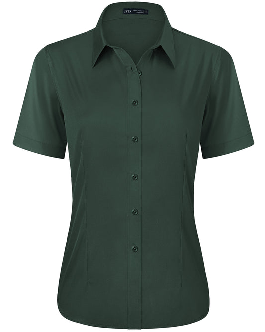 J.VER Womens Button Down Shirts Easy Care Short Sleeve Stretch Casual Dress Shirts