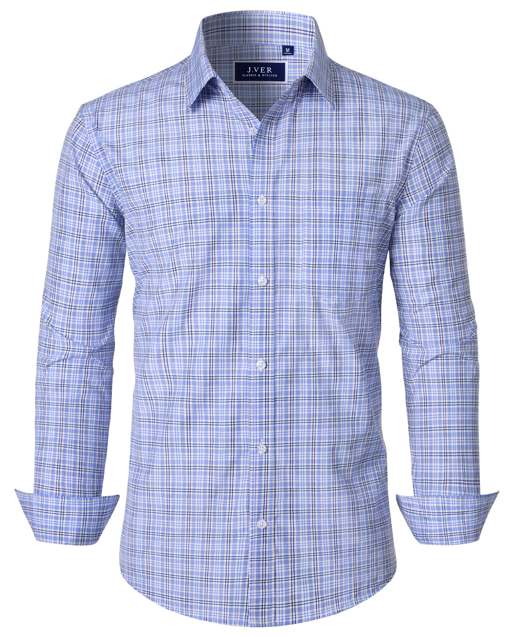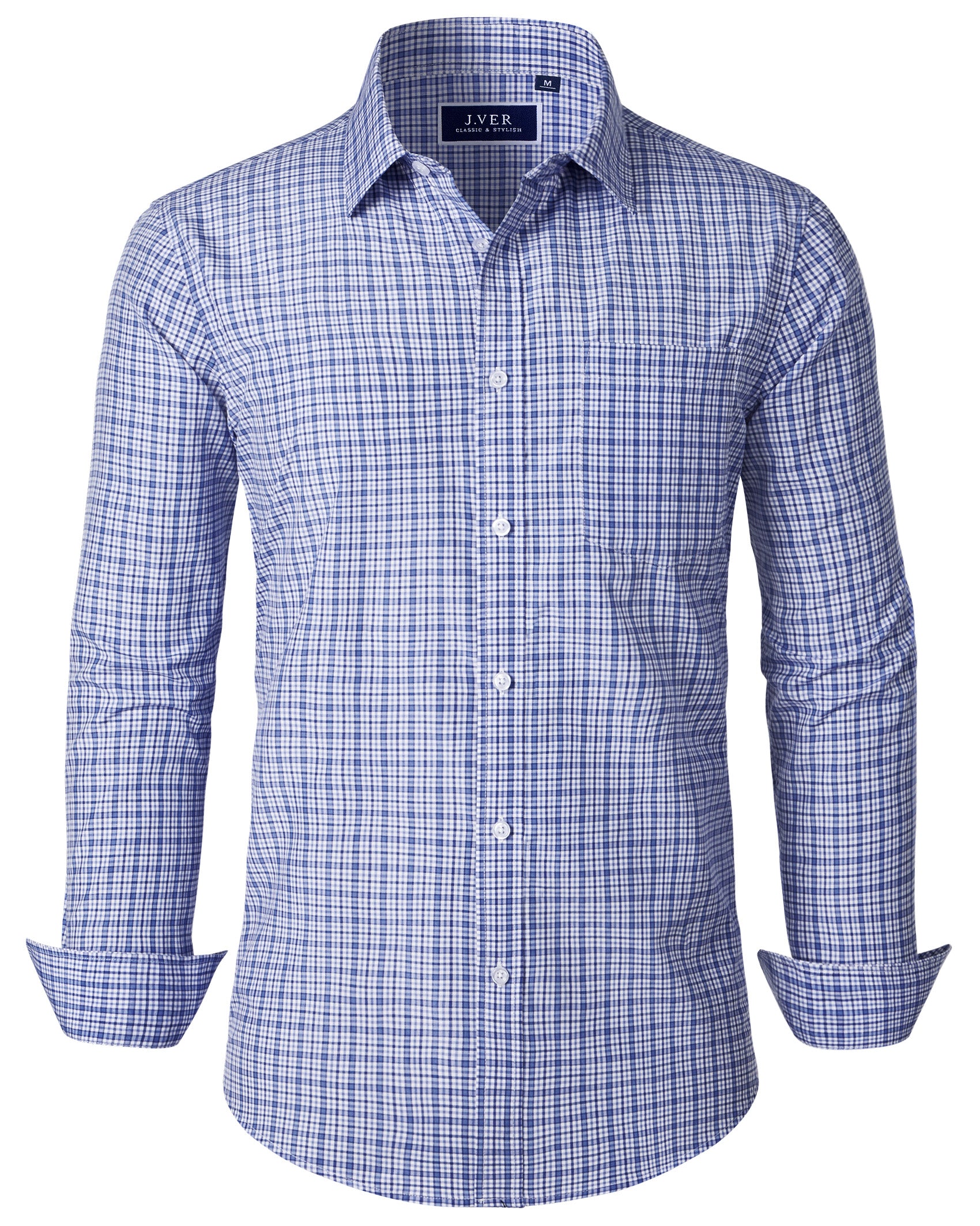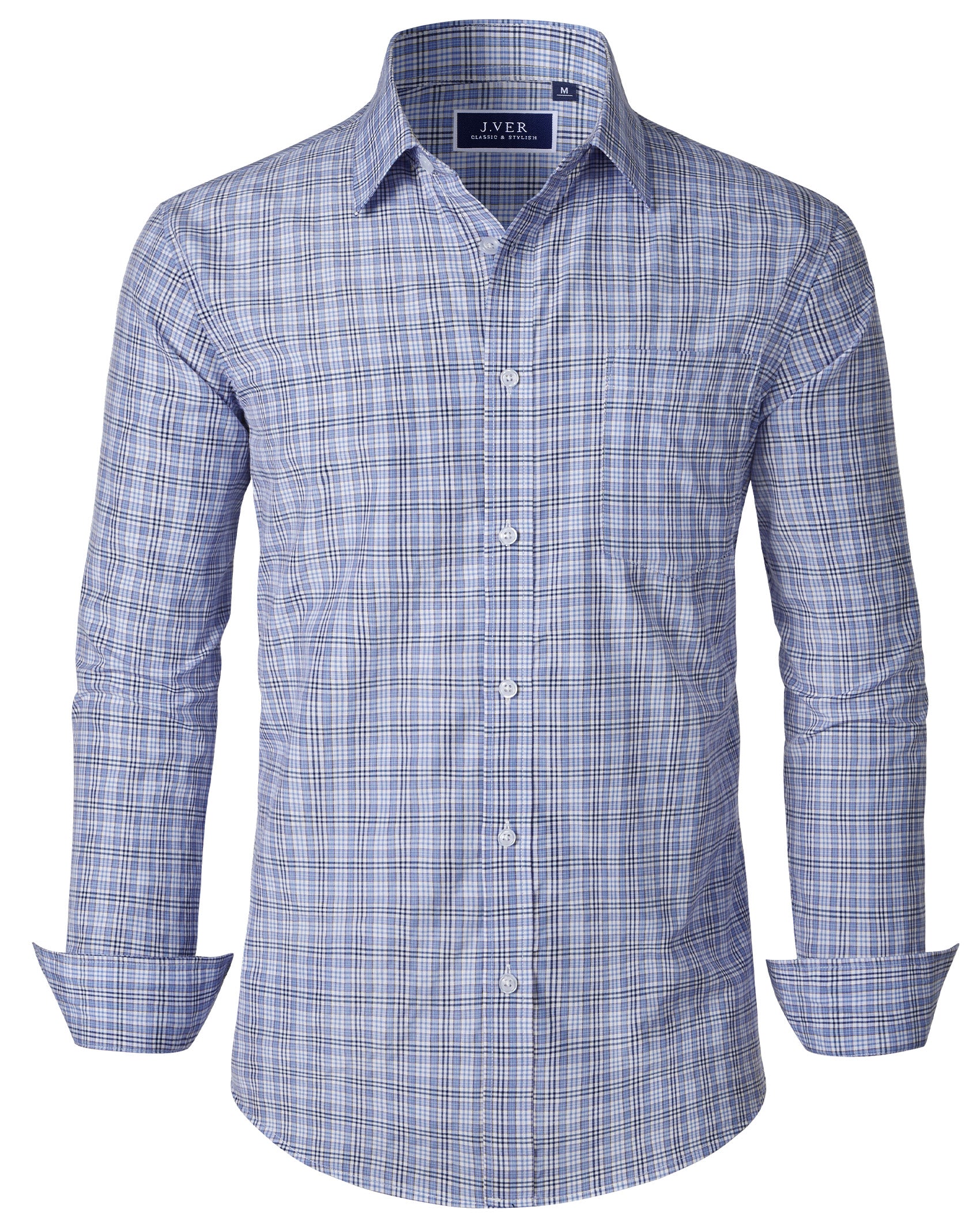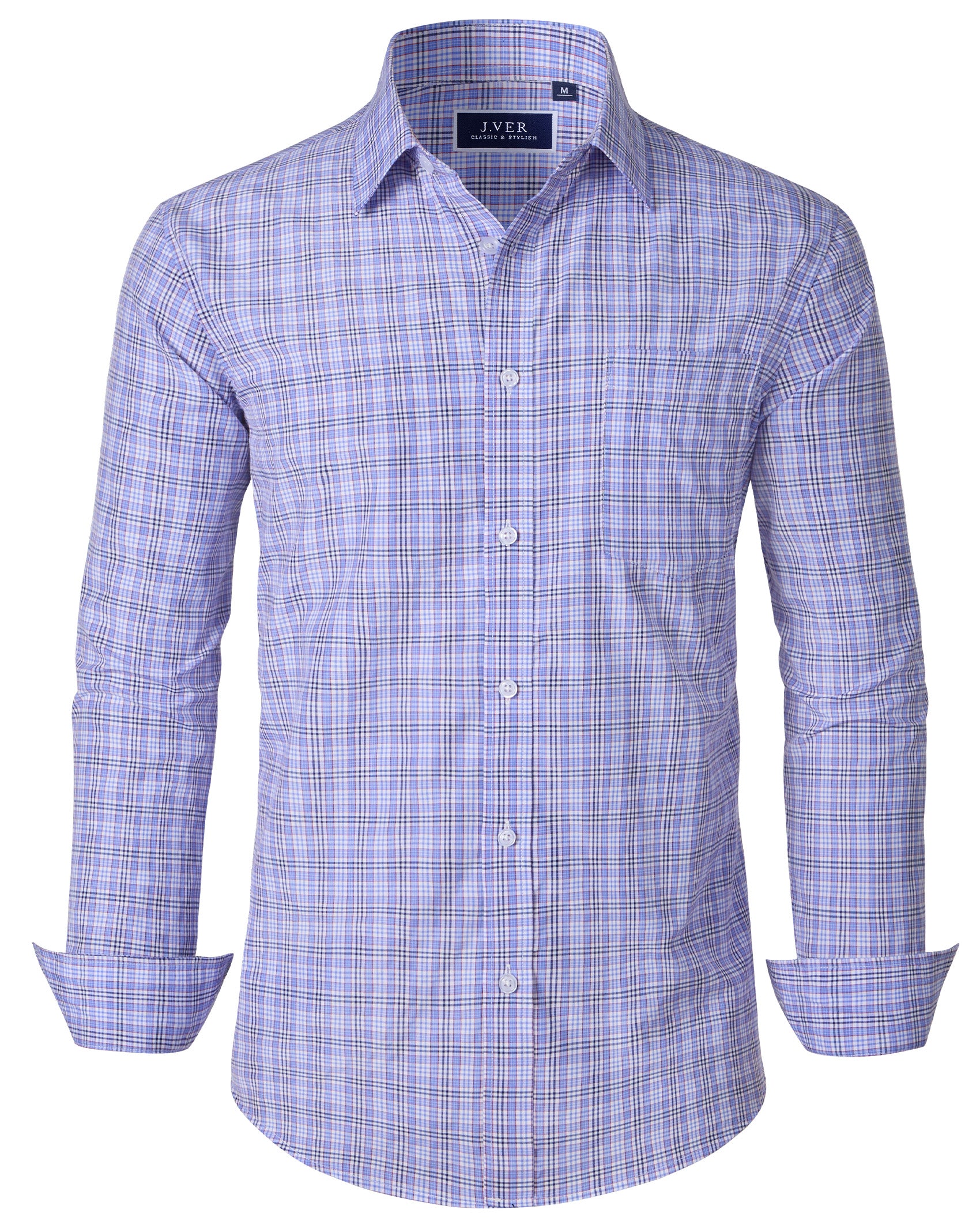J.VER Men's Button Down Shirts Wrinkle Free Plaid Dress Shirt