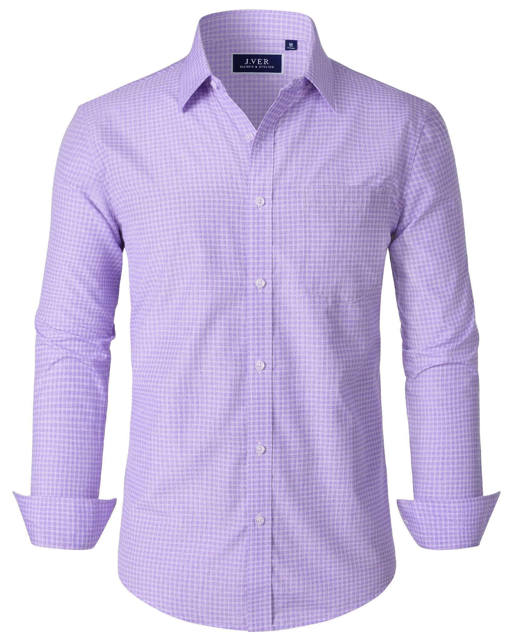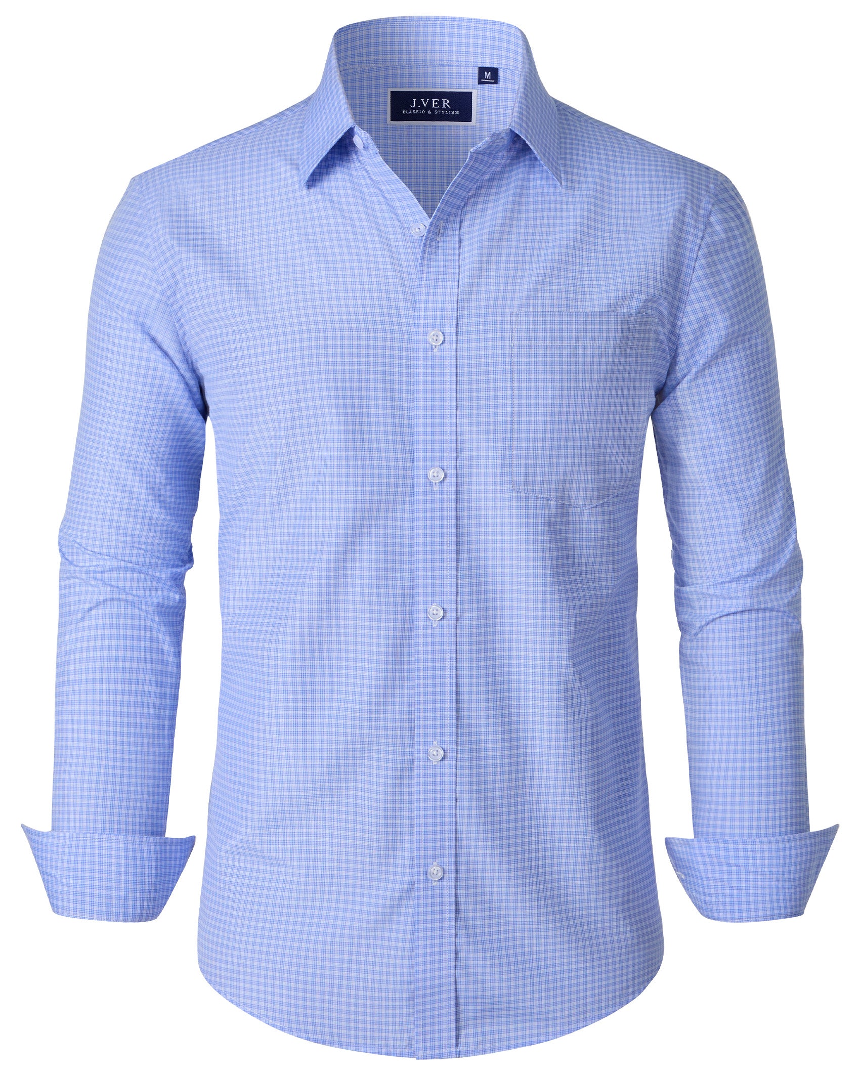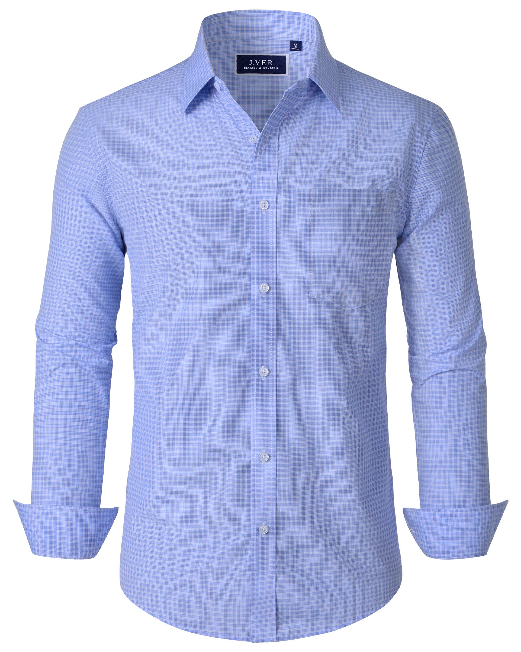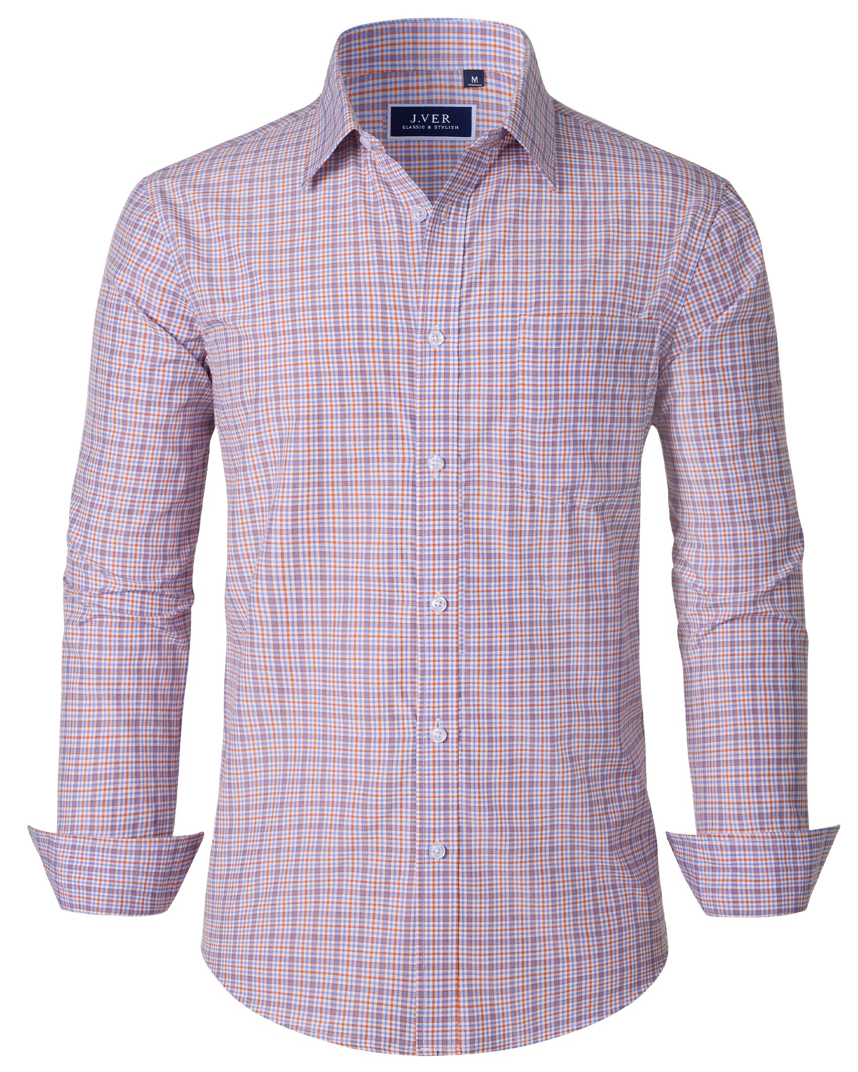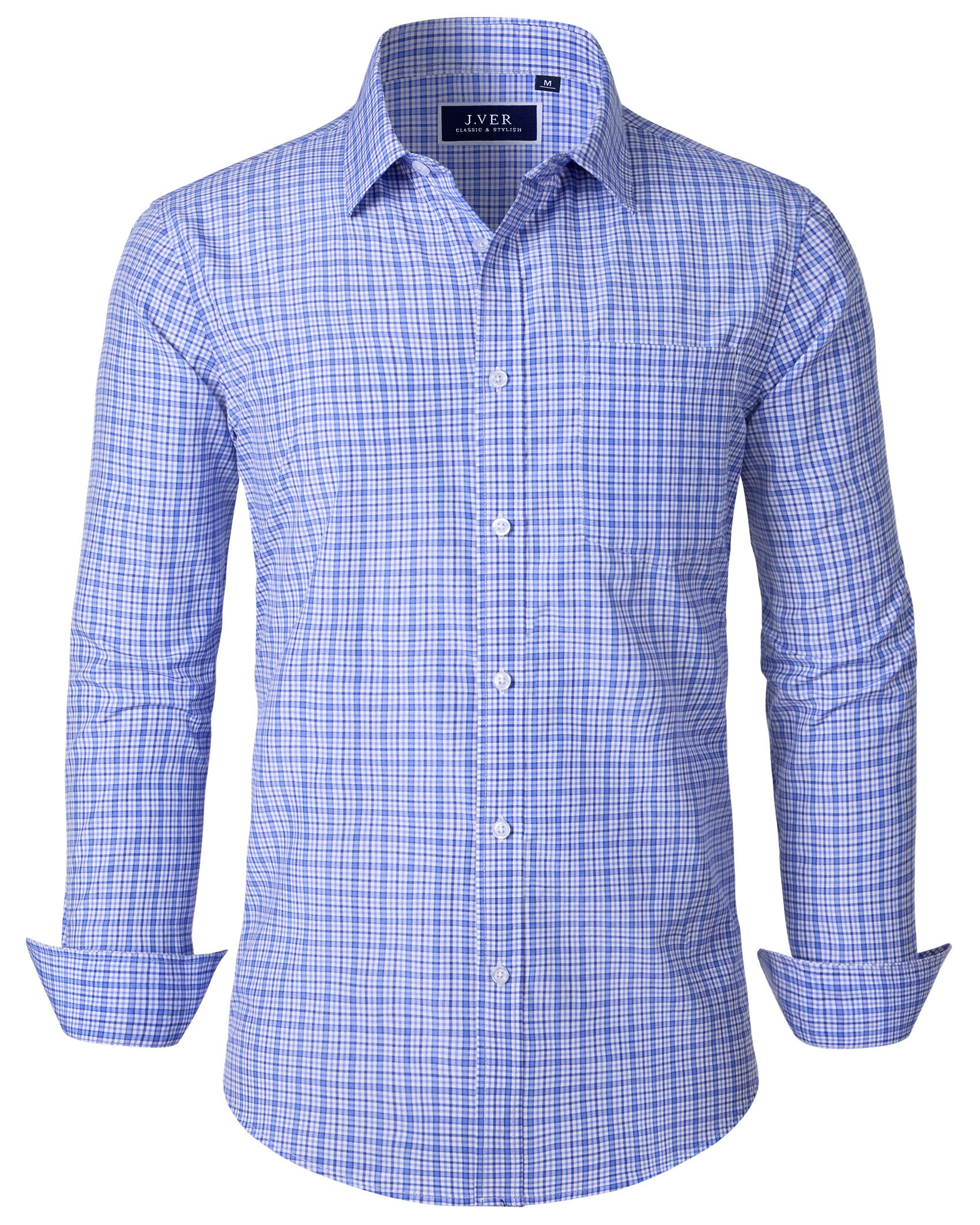 J.VER Men's Button Down Shirts Wrinkle Free Plaid Dress Shirt